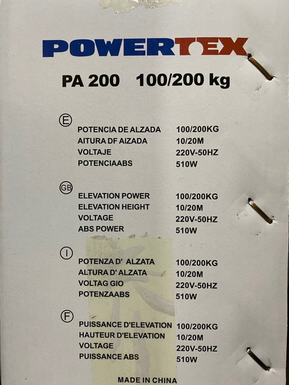 وینچ برقی 100 کیلوگرم به 200 کیلوگرم پاورتکس ( Powertex )